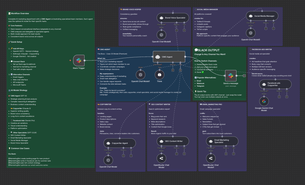 Solution: We developed an AI agent that handles market research, generates content, and tracks performance across all marketing channels.